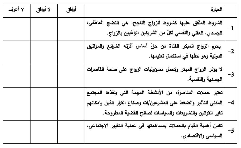 - استمارة موقف من الزواج المبكر