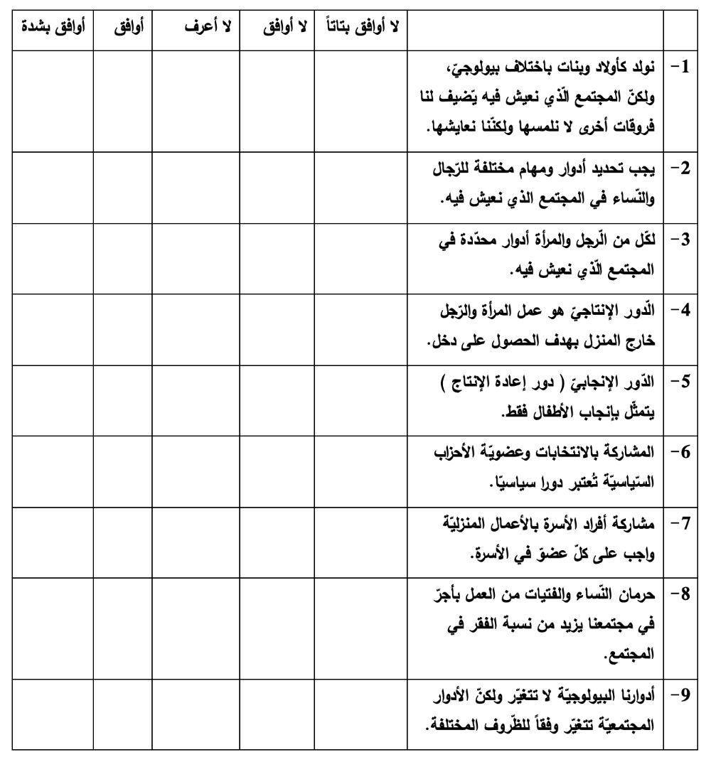 الرّجاء من المشاركين والمشاركات وضع إشارة X فى الخانة الّتي تعتقدون /تعتقدن أنّها الصّحيحة (5 دقائق)