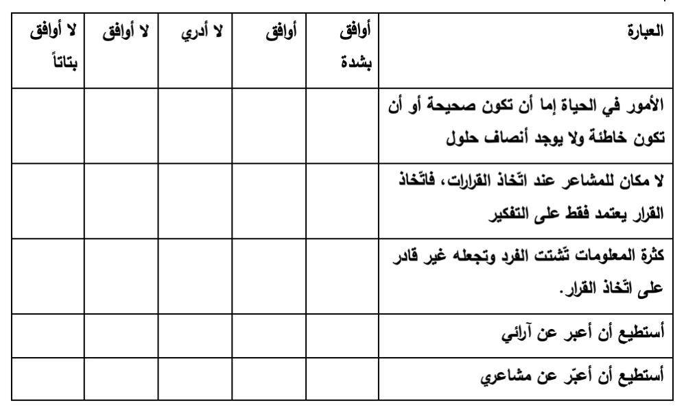 حددوا/ن درجة موافقتكم مع العبارات التالية