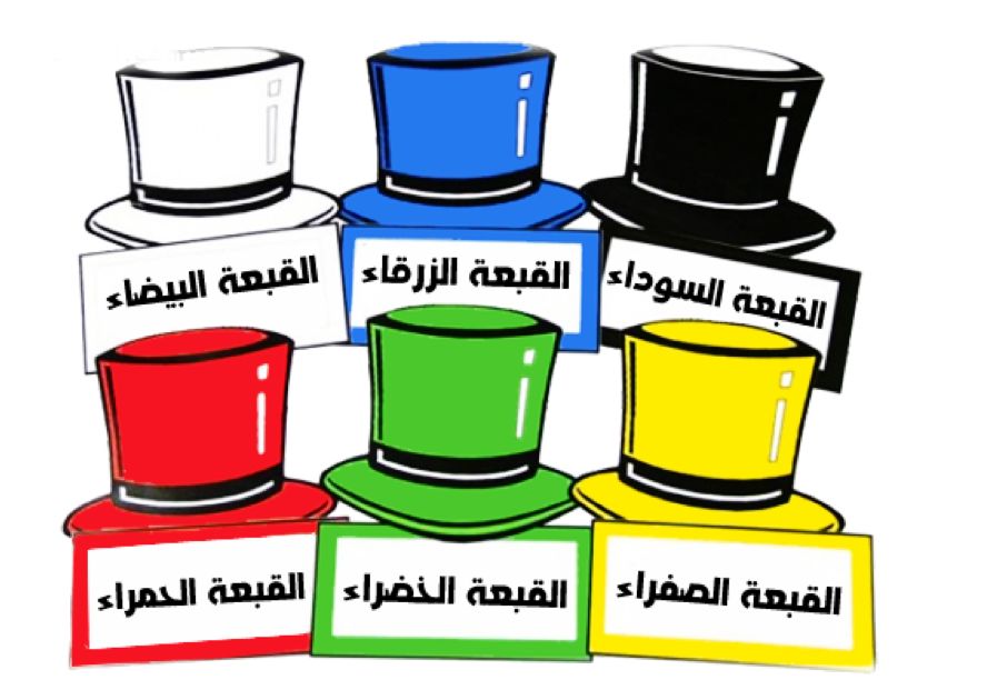 القبعة السوداء: هي القبعة التي يلبسها الفرد لرؤية التحديات والصعوبات والمشاكل المتوقعة.