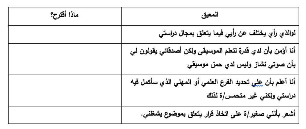 على الطالب/ة التعرف على تلك المعوقات وفهم تأثيرها على اتخاذ قراراته/ها الحياتية.