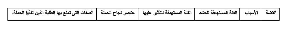 - تحديد الفئة المستهدفة لحشدهم لصالح قضية الحملة، والفئة المستهدفة للتأثير عليها لإحداث التغيير او التعديل المطلوب.